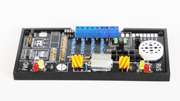 The decoder tester features solder pads and screw terminal blocks for